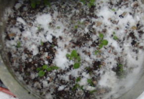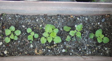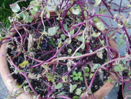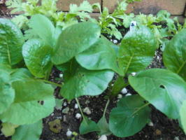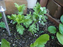 | 春菊(枝分かれするように切りました) | 小松菜も大きくなり始めました | 二十日大根も勢いよく育っています |