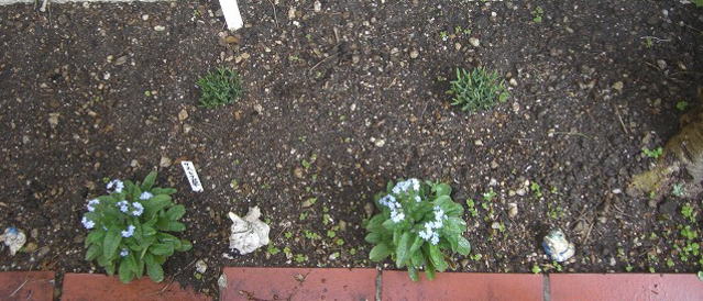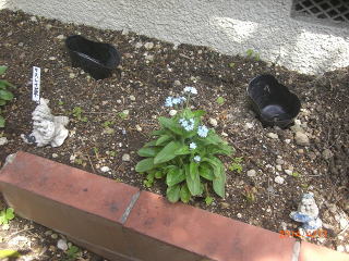 3本の根元に小さな花をとワスレナグサを植えました。