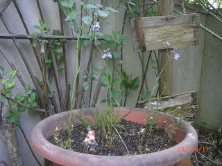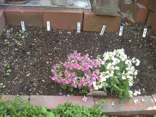 10年間残ってくれたハーブの救出と、ちょっぴり花を添えて・・・。