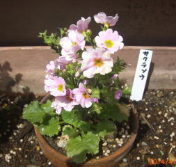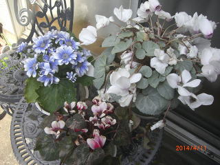 | 庭にはそぐわない花達は、テーブルの上にまとめました | 買ってきたサクラソウ。色が好き |