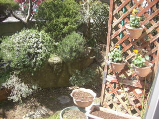 左にチラッと見えるのが、救出したローズマリー。上の方にいっぱい葉を茂らせているのがエビネ。