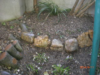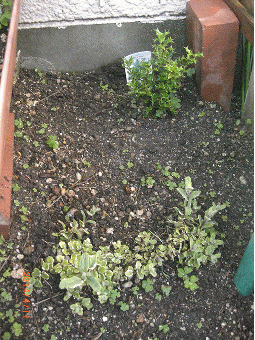 ここは、ラベンダーの苗が来たら植える予定にしている場所・・・黒の入れ物の場所が植える所。