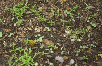 種を蒔いたジャーマンカモミールの芽が、いっぱい出てきました(^^)