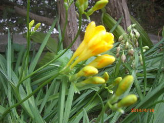 フリージアの花 ピンとが、合ってませんね・・ごめんなさい いつも「大丈夫かな」って、咲き方をする もっと私が丈夫になったら、球根を堀上て、 位置をかえてやろうと思っているのですが、 いつになるやら??? |