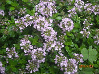 | 見事に咲いた、コモンタイム ちょっと雑草も顔を出してますが、こういうのを抜くのが大変 でも、ピンクの花色が葉を覆ってしまいそう 先月より、花が多くなって、すっごく、綺麗! |