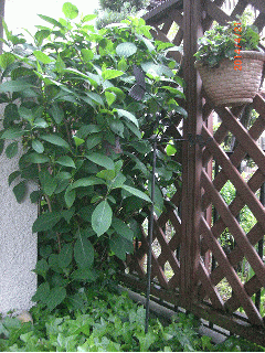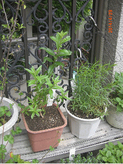先月届いたレモンバーベナも大きくなりました 隣は、細葉ミント 左にちらっと見えるのが「クコ」 友人と野草の散策の時に、小さな物を採取して、 育てた物・・これは、日本のハーブなんですけどね |