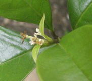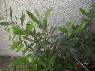 | 鉢植えのオリーブ 大きくなったオリーブの木の方は、 一度も花芽がつかないのに、こちらはしっかり付いてます |