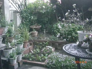 | 侵入する野良猫に見えていた庭・・・のはず (少しタイムの花が少なくなってきてますが) 野良猫の通り道になっているみたいで、スミレがやられたので通れなくしましたが・・・結果は? もう、この景色は猫ちゃんには見られないと良いんですが・・可哀想?・・ダメダメ。 |