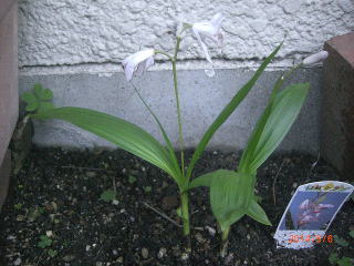 | 薄紅シラン お店の隅っこにあったのを見つけて買ってきた物 他の種は、色がきついから、あまり好きじゃない 下向きに咲くから花は良く見えないけれど、 全体の感じが絵になりそう |