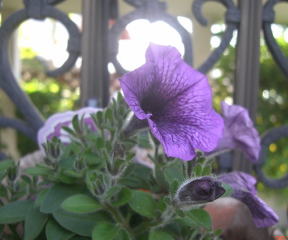 ペチュニアのミニ 雨にあたると、フニュってなってしまうんですが これは、ミニのせいかな? あまり影響を受けない 夕方、食事時に庭を見ると、この花色が、 鮮やか(ちょっと違うな?)に目に入って、 気持ちが落ち着く気がする |
