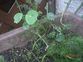 | 落ちた種から芽がでたナスタチウム | 今年のできを心配していた柿の実 |
