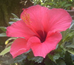 ハイビスカスが真っ赤な花を 咲かせてくれました |