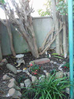 金木犀を切ったので、塀の向こうから丸見え