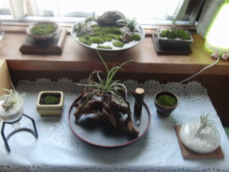 今回、コケにはまって、お皿にいろいろ植えこみました
