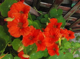 色が鮮やかすぎるので、私の庭には不釣り合いですが、花も葉もサラダで食べられるし、一種のアクセントかもしれません