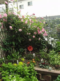 10年以上たつピンクのバラが真っ盛り