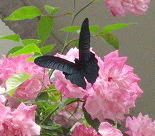 | 真黒な蝶が薔薇の花に 素敵と言うより何か不思議な感じ 魔法の国から飛んできたのかしら |