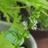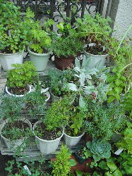 ここは、ミント類・ゼラニュウム類・レモングラス等ハーブ類の鉢植えです