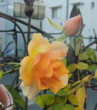 外から見える所に、バラの鉢植えを一杯かけてしまいました