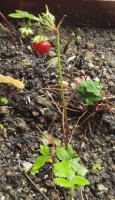 この寒さにアレキサンドリア・ストロベリーに赤い実が一つ