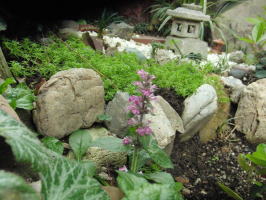 和風仕立ての所の苔が消え、名前の解らない地を這う緑に変わりました
