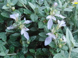 | 名前は? でも可愛い花を咲かせています | ウォルジャーマンダー 葉の色に隠れて咲いています |