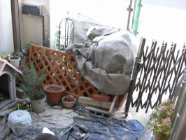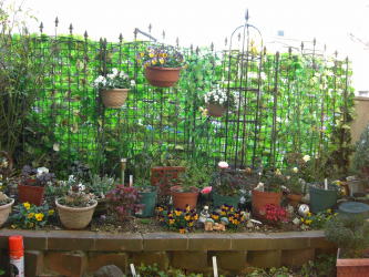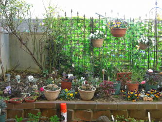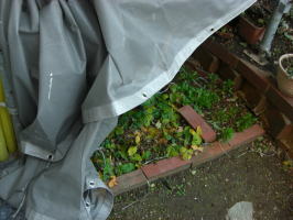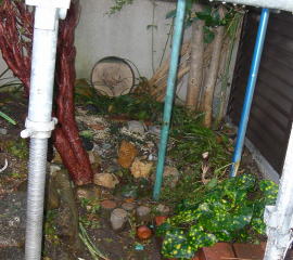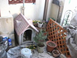 家の塗装工事の為に壁側にある鉢をここへ全部入れ込みました