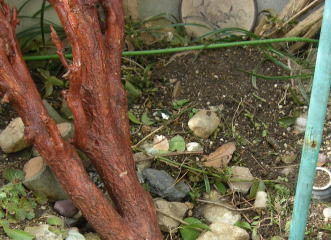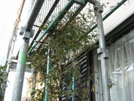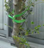 | 足場にひっかかたジャスミン | テープで枝を巻かれてしまったオリーブの木 |