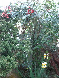 実のついた南天と綺麗に咲いた水仙の場所は安全でした