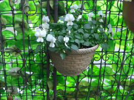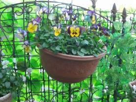 南にかかったビオラも工事とは関係なく咲き誇っています