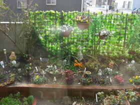 春時の庭は、ほとんどビオラが占めているので、華やかに見えます