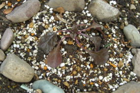 | 日陰でもよく育つと言われているアシュガ 昨年は花を咲かせてくれたのですが、 小さい時の植え替えは、恐る恐る 相性が悪いのかな |