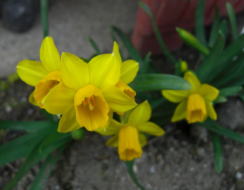 親友に貰った黄水仙 鉢一杯になってしまったので 芽が出た時に土植えに 綺麗な黄色の無事咲きました |