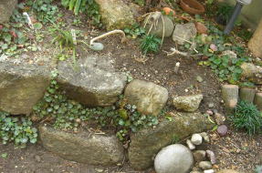 ここは木の根がいっぱいで、陽が入りにくいので、なかなか植物を植えられません