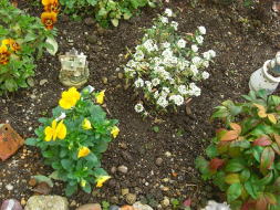 一番下の方に黄色く見えるのが、毎年植えているビオラです