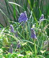 | <ムスカリ> 鉢の周りが 三つ葉とナツズイセンに 囲まれています でも、春になると ちゃんと出てきてくれました |
