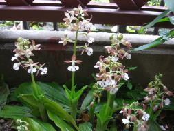 外から階段を上がって、玄関までに並んでいる植物達です
