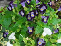 左中央奥にも黒っぽい緑色のアシュガを持ってきました