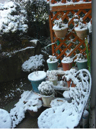 久しぶりの雪が、鉢植えに積もっています