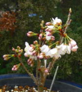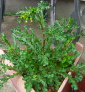 西側の棚 ここにも冬越しの子が二鉢あります ミニバラも五鉢 葉は病気にかかりやすいですが・・・ 今の所大丈夫そうです(^^) |
