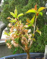 雨にも濡れて、花は枯れ、新芽が出てきました