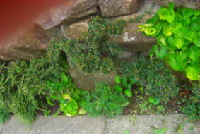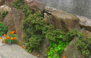 岩と岩の間に植えたマリーゴール