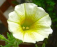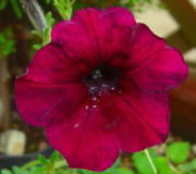 玄関前に置いた丸鉢に植えたペチュニア