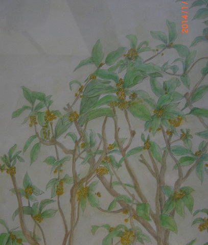 この絵を描いてから、自分の感性のなさを感じました。 葉には、いりろな色が、含まれているのに、私の目には、その何種類かの色が見えないのです。 葉を描くのを諦めました・・・情けない。