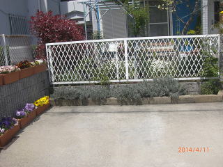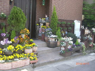 | 前から素敵な玄関って思っていた場所 | 真正面がラベンダー・パンジーは種から育てたとか |