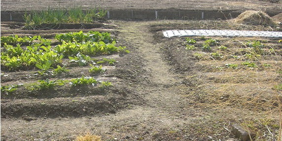 これは、散歩道で見かける、小さな畑を一人でやっている男性の畑。