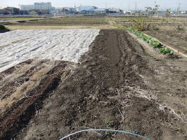 | 綺麗に耕された畑 ビニールをひいて土地改良かな? |