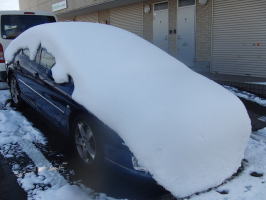 車に積もった雪(日陰に置いてあったから溶けていません)