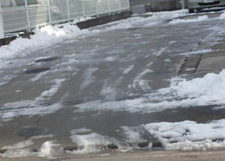 右は駐車場の凍結した様子・・・これでは、車を入れられないですよね