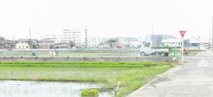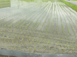 遠くまで行けず、手前から苗しろが緑色のカバーを撮ったのですが、畑が大きく写りこんでしまいました